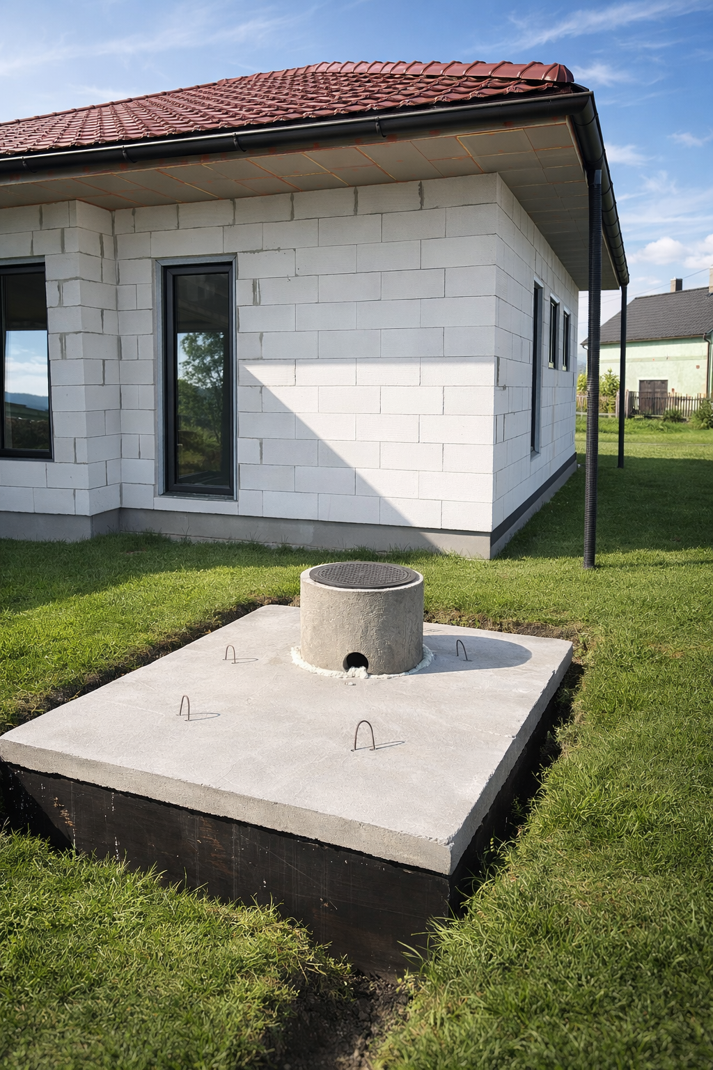 Betonový komín pro septik s betonovým krytem